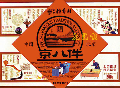 清光緒二十一年(1895年),南京人郭寶生來京開辦「稻香村」食品店。前店後廠,自產自銷,結合南甜北鹹的口味,花樣不斷翻新,贏得京城百姓喜愛。「稻香村」在食品改良方面用於嘗試,成為名副其實的時尚象徵和品牌代表。「稻香村」的京八件是來京城旅遊者熱衷食品。