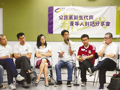 陳淑莊、余冠威等公民黨的新一代立會參選者,昨舉行「青年人對話分享會」,與多名青少年就教育、就業和文化政策等議題交流。稱建立有效平台讓年輕人表達意見很重要,又鼓勵年輕人爭取和維護個人權益。