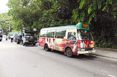 昨晨8時31分,49歲姓林男子駕駛一輛行走52號路線專線小巴,滿載乘客開往赤柱廣場。小巴沿黃竹坑道東行第一線途至海洋公園行政大廈對開停車落客,尾隨而至一輛吊臂泥頭車駛至,54歲姓黃司機剎制不及,撞向小巴車尾。