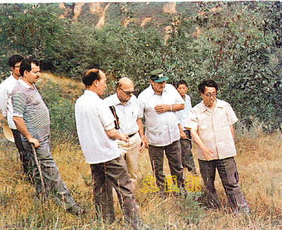 ■1988年,李佩成(右一)和國外專家共同進行黃土高原綜合治理。