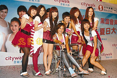 【本報訊】台灣人氣美眉組合「黑Girl」(黑澀會美眉)昨日出席在荃新天地舉行的「夏日大作戰」活動,為現場超過500名fans簽名海報留念,她們除現場獻唱新歌外,又與fans玩遊戲,得勝者更獲美眉親手餵吃甜品。早前生日的筱婕昨日補辦生日會,fans一齊唱生日歌,令她感動得哭了出來。至於生日願望,她說:「希望我們新出的專輯大賣,和我們黑澀會眾人永遠都在一起。」會否希望找個男友?她笑道:「暫時沒有想過,還是以工作為重。」