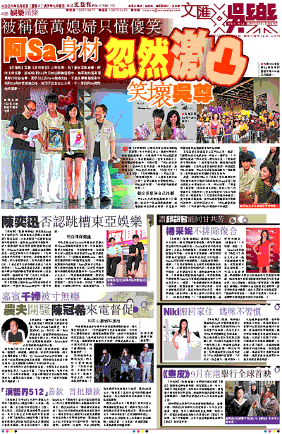 其後,記者對阿Sa以「老爺」身份提到緋聞男友鄭中基的父親近日與黃柏高(Paco)合資二億元購買大中華區EMI一事,阿Sa即說:「恭喜晒!恭喜佢。(如向你招手加盟,會加入嗎?)我現在的公司幾好呀!(會去開幕禮嗎?)我又唔係佢公司,佢請先啦!」又說沒有和鄭中基通電,更不會親自恭賀他。當阿Sa離開準備做電子傳媒的訪問時,在旁的記者大叫:「阿Sa做億萬媳婦啦!」聞言後的阿Sa只懂在旁不停傻笑。