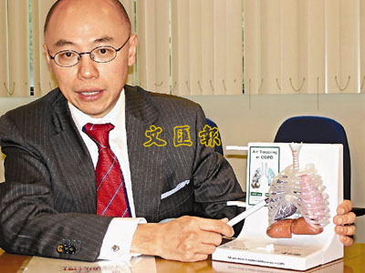 【本報訊】(記者 陳祖恩)近年本港空氣污染嚴重,令患有俗稱「肺氣腫」的病人因氣管收縮而需經常進出醫院,增加醫院重擔。聯合醫院推出先導計劃,把過往由普通科醫生提供治療,改為「專科專醫」,並容許外借服藥物化霧機和上門探訪,減少病人留院的日數,讓他們盡快回復正常生活,亦有助解決病床緊張的問題。