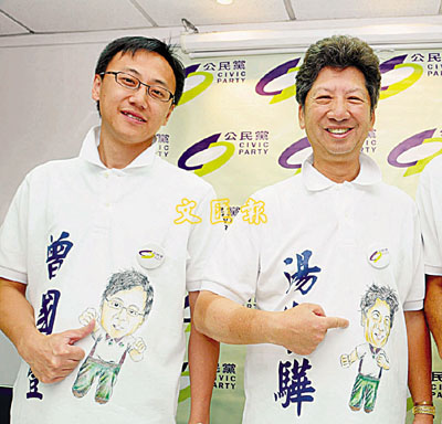 【本報訊】(記者 明言)立法會競選踏入倒數第5個星期,一直堅持拒與其他反對派政團配票的公民黨,又再出招「箍票」,大打告急牌。公民黨新界東參選團隊昨日發放消息,稱按照民調的最新走勢顯示,在新東湯家驊參選名單排第2位的參選人曾國豐,與同區的民建聯劉江華參選名單第2位的陳克勤的支持度,相差不出3個百分點,若選民「集中」投票,公民黨名單有望取得兩席。地區人士認為,公民黨打告急牌是希望集中反對派票源於曾國豐身上,「趕絕」同屬反對派的社民連梁國雄及民主黨黃成智。