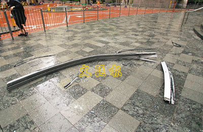■部分窗框飛至行人路,幸無擊中途人。本報記者溫瑞麟 攝