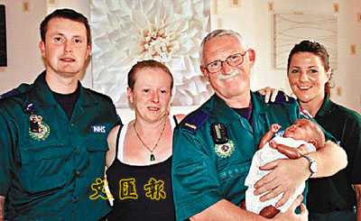 ■瑪麗與救護人員合照,若非他們及時趕到,可能大細不保。網上圖片
