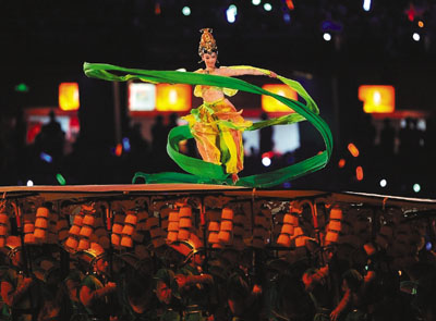 崑曲是中國古老的傳統藝術,已選入世界非物質文化遺產名錄。地面上,中國最有名的五幅長卷《遊春圖》、《清明上河圖》、《大駕鹵簿圖》、《明憲宗元宵行樂圖》、《乾隆八旬萬壽圖卷》一一呈現,它們分別來自唐、宋、元、明、清五大朝代,在古典舞的陪襯下,再現了古代中國禮儀之邦的盛世氣象。