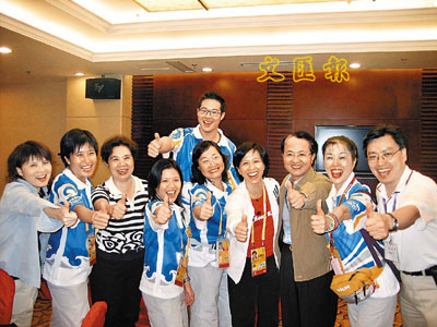 【本報記者林賽香北京8日電】今屆奧運會本港派出歷屆最鼎盛的義工隊伍。香港中聯辦副秘書長王志民昨日在京設宴款待10名香港義工隊隊長,為他們打氣,並以「珍惜難得機會,自願服務奧運」勉勵他們要以「主人家」的身份,發揮港人專業和無私奉獻的精神。最後王志民還送上北京名產水蜜桃予全體義工。