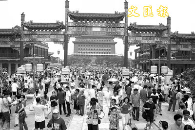 日前,北京前門大街經歷1年多時間的修繕、改造後隆重開街。數以萬計的北京市民和遊客相繼來到這條步行大街。 中通社