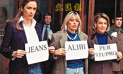 意大利一名男子在1999年被控強姦一名女子,抗辯時他指稱女事主在事發時穿上緊身牛仔褲,不可能被他強姦,法庭當時判處他無罪。這項判決哄動了整個意大利,引起社會人士大感憤怒。案件經過多輪上訴和審訊後,最高法院法官最近宣判時強調緊身牛仔褲並非貞操帶,最終裁定被告有罪。