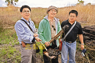 ■中聯石化主席許智明博士(中)、陝西延長石油副總經理馮大為(右)在馬國油田現場採集石油樣本。