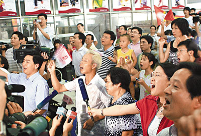 ■陳艷青奪冠一刻,現場沸騰。本報記者 攝