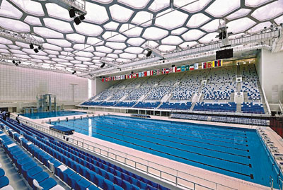 「水立方」自建成後一直被形容為藝術建築,而內裡的設計同樣先進。「水立方」由3,000多個「氣泡」包圍,這種四氟乙烯薄膜有著很好的熱學性能和透光性,可以調節室內環境,冬季保溫,夏季散熱,保證運動員在賽前賽後均有適當的溫度及光度作最佳發揮。