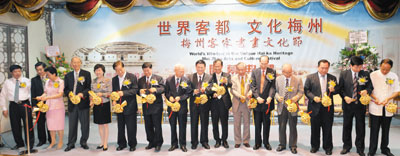 ■主禮嘉賓為「世界客都.文化梅州--梅州客家書畫文化節」剪綵。 本報記者李志樑 攝