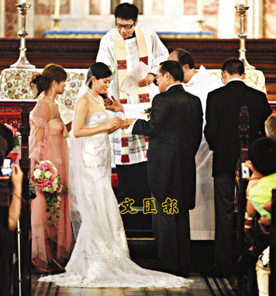 ■流著甜蜜的眼淚,在教堂交換結婚戒指。