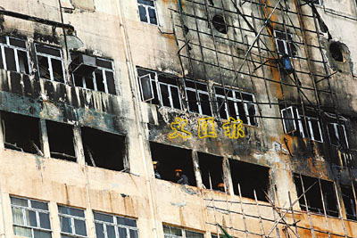 【本報訊】葵涌和宜合道塑膠玩具貨倉3級大火前晚救熄後,昨日仍有消防員在場拉喉戒備,以防死灰復燃。火災現場大廈仍然封閉,屋宇署、警方及消防員在火場調查起火原因。工廈內的廠戶和職員,中午後獲准返回單位點算損失。有廠戶表示,其廠內有逾百萬條領呔,大多被水浸濕,且有濃烈燒焦味,目前尚未知損失若干。