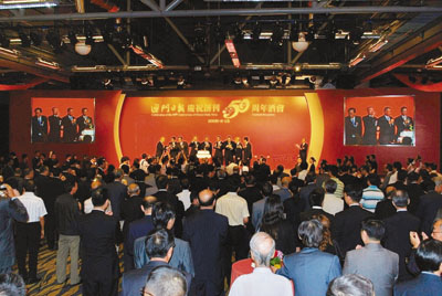 澳門日報社長李鵬翥在「澳門日報慶祝創刊50周年酒會」上,道盡澳門日報的50載風雨歷程。他表示,50年前,在中國人民抗日戰爭偉大勝利13周年之際,澳門日報在愛國同胞熱切期待中誕生。50年後的今天,澳門日報在中國人民百年圓夢的北京奧運進行得如火如荼聲中,隆重舉行創刊50周年酒會。