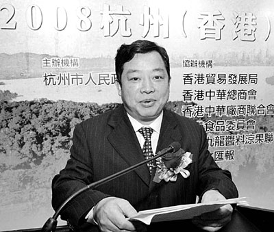 由杭州市人民政府主辦,香港貿易發展局、香港中華總商會及本報協辦的「2008杭州(香港)優質農產品推介會」昨日召開,中國國際貿易促進委員會駐港代表處首席代表趙會田、本報總經理顧行偉、香港中華總商會會董吳連烽、香港貿易發展局展覽事務高級經理溫少文等出席了洽談會。杭州市人民政府還在美食博覽會上專設一個展區,展示水果、乾果、中藥材、蜂業等5大特色產業和茶葉、花卉苗木、節糧型畜禽、蔬菜、竹業等6大優勢產業。