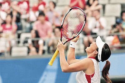【新華社北京17日電】(記者 王英誠、段博)今日的網球女雙銅牌爭奪戰中,中國金花組合鄭潔(見圖)/晏紫以2:0戰勝了今年的澳網女雙冠軍、烏克蘭的邦達連科姊妹,為中國隊收穫了第一枚奧運網球賽銅牌。