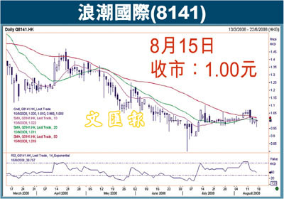另外,截至今年6月30日止,浪潮手持的銀行結餘及現金為4.32億多元,有充裕的資金發展業務,加上集團已就旗下的IT服務業務及原有業務進行整合,協同效益將逐步顯現,未來盈利有理想的表現也是可以看高一線的。保守估計,今年全年盈利可達3.2億元,每股盈利10.4仙,以現價1元計,市盈率約10倍,在佳績支持下,股價升勢已可預期,上望目標為4月中阻力位的1.5元。