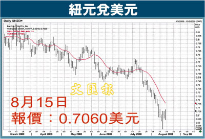 由於紐國的零售銷售皆於今年的首季及第2季連番下跌,因此部分投資者已開始憂慮紐國經濟在經過第1季的收縮後,將可能會進一步在第2季有所轉差,而紐國央行於上月24日的降息行動,亦正反映出這個情況,故此不排除紐國央行於下月11日將會續有降息活動出現,這亦不利紐元於稍後的表現。此外,美國近期所公布的經濟數據,除了房屋方面之外,其他數據皆已略為有所改善,這亦是引致部分投資者於近期傾向進一步回補美元空倉的原因之一,若果油價於往後的下調幅度繼續有所擴大,則美元亦將會繼續處於較為偏強的走勢。故此可伺機在71.50美仙附近沽出紐元,止蝕位在72.00美仙水平,預料紐元將反覆走低至69.30美仙水平。