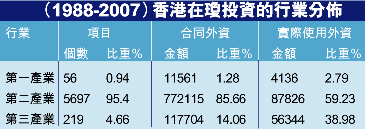 香港在瓊投資的行業分佈(1988-2007) (圖)