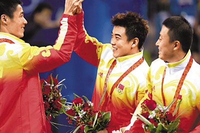 四年前在雅典,張怡寧為中國代表團摘得第一百枚夏季奧運會金牌,而王皓卻在決賽負於柳承敏,丟掉分量最重的男單冠軍;四年後奧運來到北京,中國乒乓球隊在自己的家門口續寫輝煌。這也是世界盃冠軍王皓的第一塊奧運會金牌。