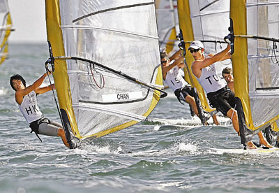 【本報駐山東記者胡榮國、于永傑、孟祥斐青島18日電】今日舉行的京奧滑浪風帆男子帆板第8、9兩輪比賽中,港將陳敬然再於兩輪賽事中失準,總排名由昨天的第5跌落至第7名。而女子帆板選手陳慧琪則發揮穩定,總排名微跌至第9位。