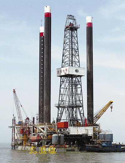 ■中國石油可採資源量達212億噸,石油儲量產量進入平穩增長階段。圖為位於渤海灣的10億噸的大油田—南堡油田的海上鑽井平台。 資料圖片