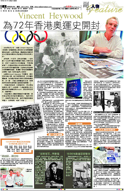 58歲的Vincent Heywood 不是學者,甚至沒有唸過大學,他只有兩個目標:向中國的運動員,特別是向香港早期的足球隊隊員致敬;另一個,「當北京奧運結束之後,我會將所有的研究資料都交給香港的資料館。」