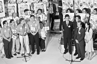 ■民主黨借「梁展文事件」狙擊陳鑑林,卻反被批評民主黨阻撓追究陳方安生「十成按揭」事件,是「講一套,做一套」。 本報記者劉國權 攝