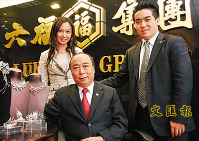 ■六福集團行政總裁黃偉常(中)與兒子黃浩龍(右)及媳婦張雅玲(左)一家人樂也融融。