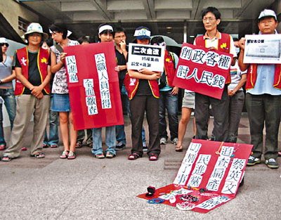 ■「人民火大聯盟」手持標語到民進黨中央黨部抗議。 網上圖片