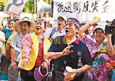 ■小馬上任滿3個月,高達7成民眾對目前台灣經濟不滿意。民眾日前拿水球丟往經濟部外牆,抗議經濟未能馬上變好。中央社