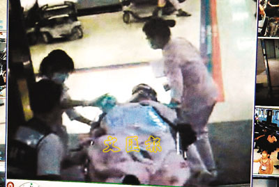 ■在槍戰中,警員劉福興頭部中彈,被送往醫院急救。圖為劉福興送進醫院時的錄影畫面。 中央社