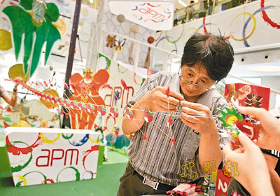 王赤峰小心翼翼地接駁好風箏,以進行試飛。