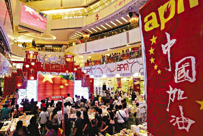 ■apm商場聚集了大批市民共享奧運閉幕禮。本報記者潘達文 攝