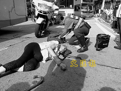 ■八旬嫗過馬路遭巴士撞倒,頭破血流陷入昏迷,送院後證實不治。 本報記者葉傲冬 攝