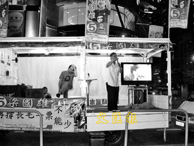 【本報訊】(記者 明言)立法會投票在即,反對派可謂「鬼打鬼」,各自搶票。在今屆立法會選舉中,5個選區都有派員參選的社民連,面對公民黨的強大勢力,昨日繼續透過花車巡遊方式「搶票」,主席黃毓民聲稱,現時社民連腹背受敵,公民黨作為政治惡勢力,聯同那個「過氣高官」陳方安生,矛頭直指社民連,在5大區搶票。