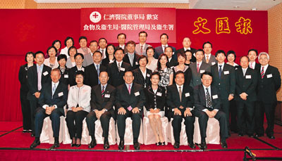【本報訊】仁濟醫院第41屆董事局成員日前與食物及衛生局、醫院管理局及衛生署進行午餐聚會,並匯報屬下醫療服務的最新發展。除仁濟醫院董事局羅嘉穗主席及各總理外,出席的政府官員包括食物及衛生局局長周一嶽、常任秘書長李淑儀、醫院管理局主席胡定旭、衛生署署長林秉恩等多位長官。