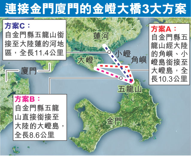 連接金門廈門的金嶝大橋3大方案 (圖)