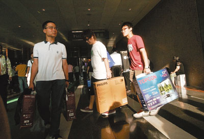 電腦技術員吳先生同樣趁「最後一刻」進場,他以3千多元購買了3部打印機及1個電腦屏幕。他指出,多樣產品令他省下近千元,即使要花時間排隊入場,也是值得。 ■本報記者 鄭啟源