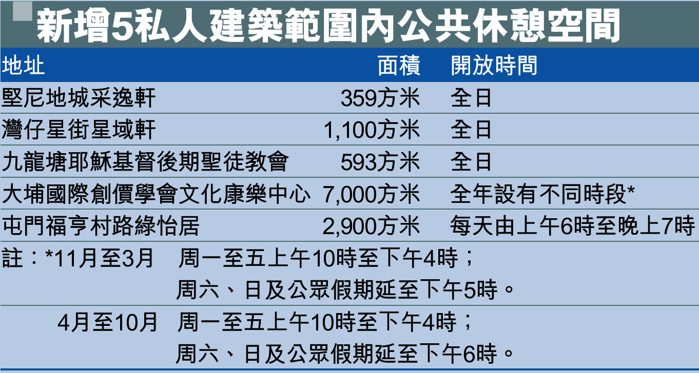 新增5私人建築範圍內公共休憩空間 (圖)