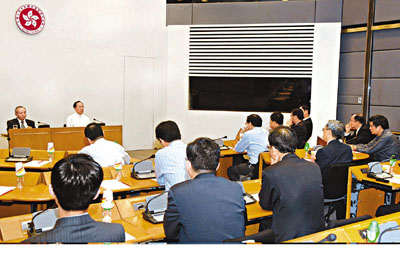 ■曾蔭權昨日上午在中區政府合署就《施政報告》諮詢25名大學學者的意見。