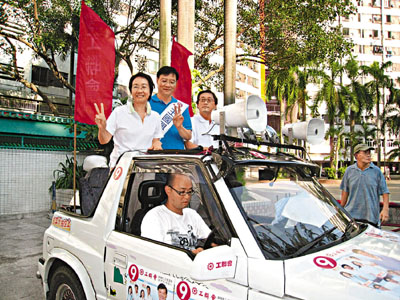 連日來,王國興及其團隊已經走遍整個新界西,流了不少汗水,而為了爭取更多市民支持,嫻姐及「鬍鬚堅」昨日陪同王國興乘坐開篷車,在蝴蝶h、屯門市中心、大興、田景、富泰h一帶巡遊,與街坊接觸。