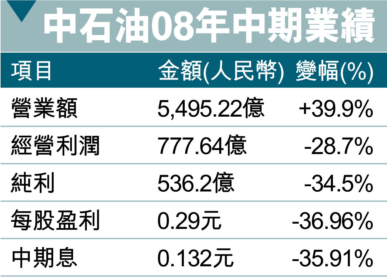 中石油08年中期業績 (圖)