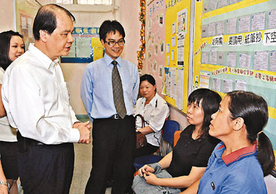 勞工及福利局局長張建宗昨午探訪元朗區,在元朗民政事務專員陳欽勉和元朗區福利專員周廖鳳儀陪同下,先到訪社會福利署元朗綜合家庭服務中心,了解該中心運作和為區內居民提供的活動。隨後前往香港國際社會服務社元朗中心辦事處,由服務總監湛國榮接待並介紹在區內的工作,特別是作為執行機構,如何宣傳和推廣政府的交通費支援計劃。行程尾站是探訪楊屋新h一住戶,實地了解這個自食其力的家庭的生活狀況。