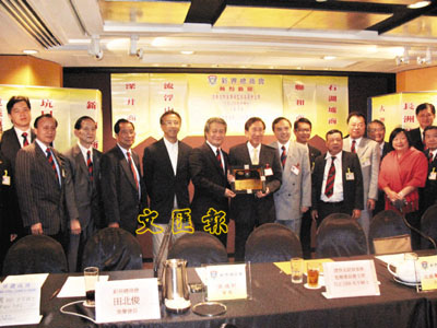 ■新界總商會會長張德熙、主席王振聲等與證監會主席方正,田北俊等合影。