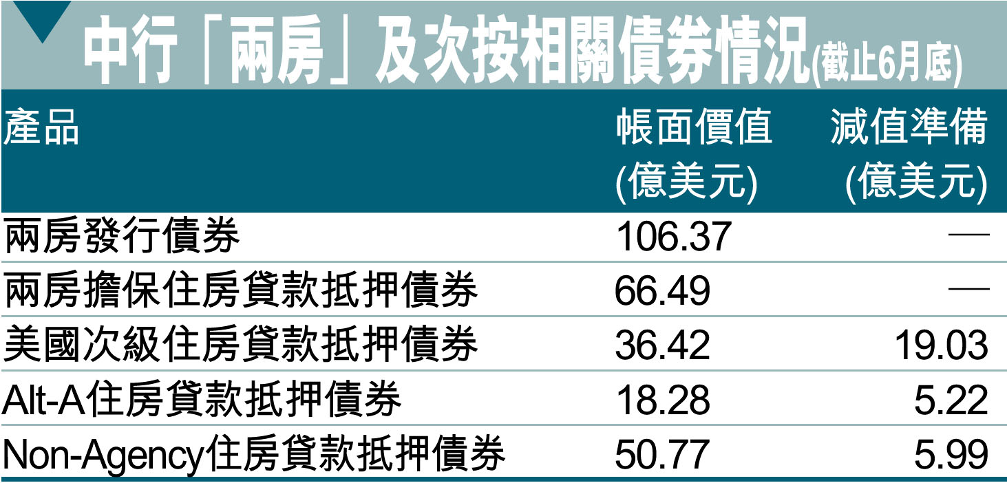 中行「兩房」及次按相關債券情況(截止6月底) (圖)
