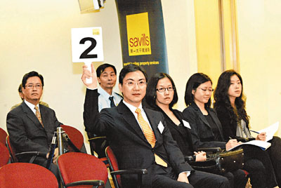 ■恆基地產發展部總經理黃浩明昨在拍賣會上,以底價投得金國、國民兩廈。 本報記者張偉民 攝